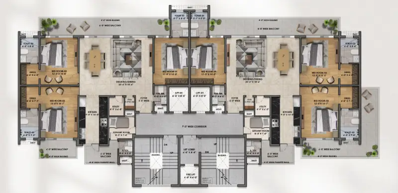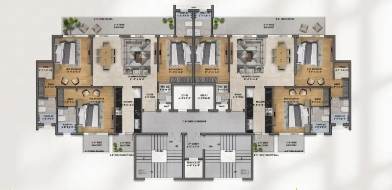 Every space within our project is created with a clear design intent, to offer harmony between natural surroundings and modern living. From well-ventilated rooms to strategically aligned balconies, each layout enhances lifestyle flow and family interaction. Our planning ensures that daily living is effortless, and every square foot is truly usable. This is more than just design; it’s mindful living, brought to life through architecture.