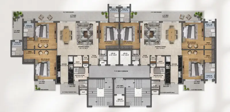 13) Apartment Size : 3 BHK 2350 S.Ft, 3+1 BHK 2698 Sq.Ft, 4+1 BHK 3796 Sq.Ft
